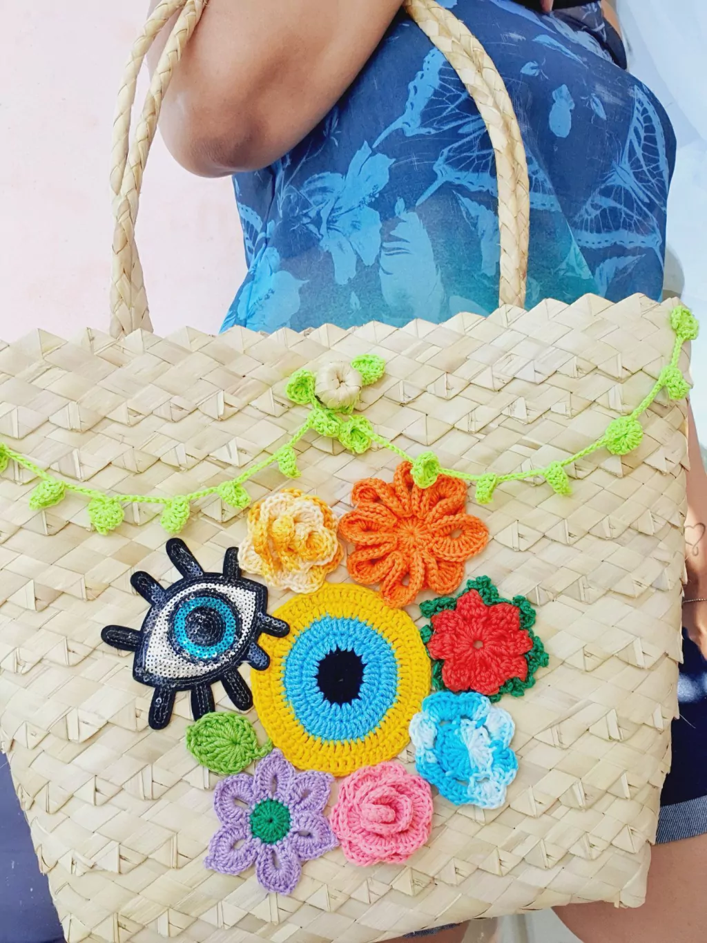 Adquira agora a Bolsa de Palha Customizada com Apliques de Crochê da Helô Nazaré Acessórios e eleve seu estilo com uma peça exclusiva que celebra a autenticidade do artesanato. Uma escolha consciente que une moda e responsabilidade ambiental.
