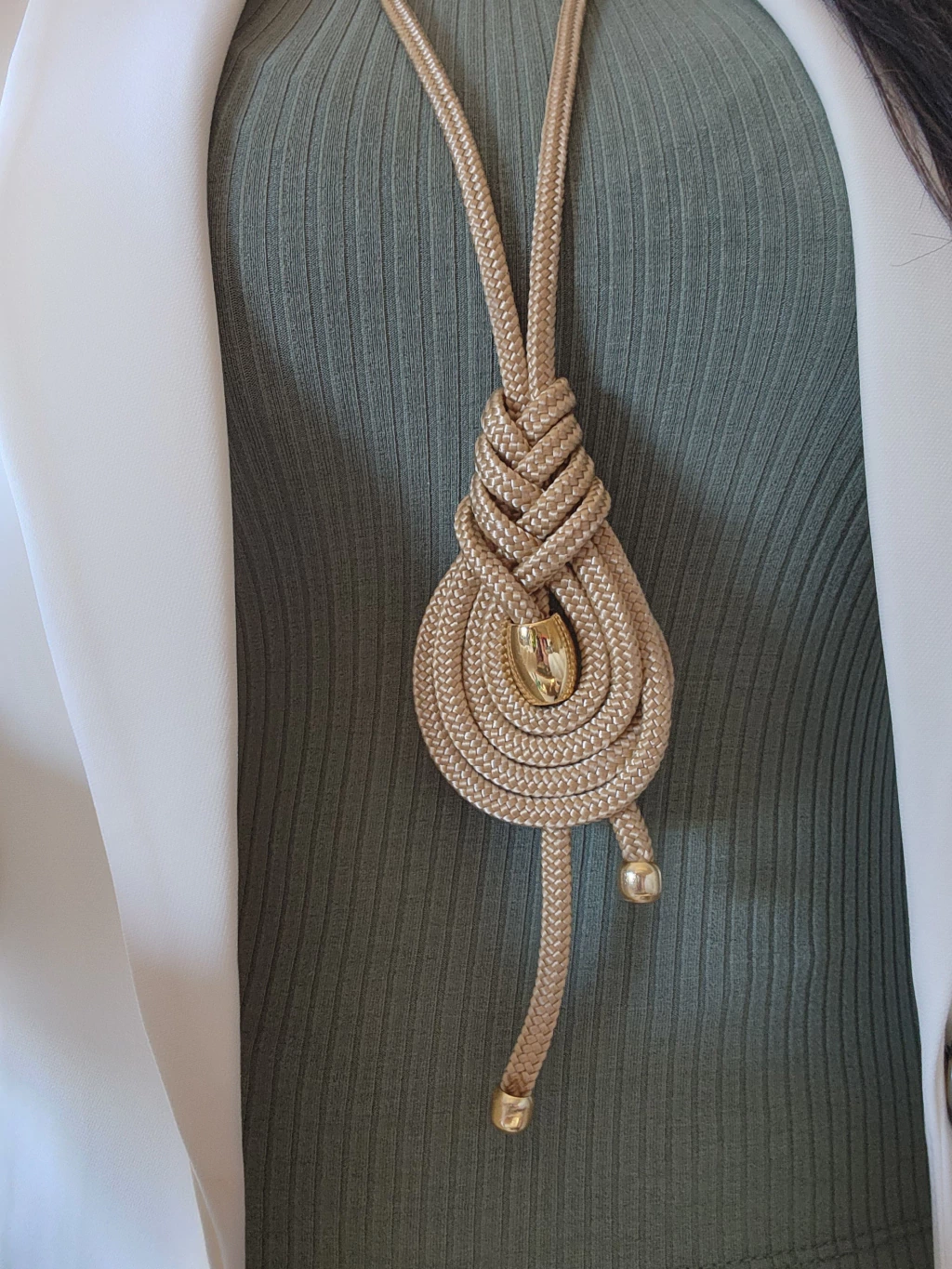 Ideal para quem ama acessórios com personalidade e um toque artesanal. Adicione um charme boho, um ar náutico ou uma elegância natural ao seu visual com este colar de cordão único e moderno, perfeito para expressar sua autenticidade.
